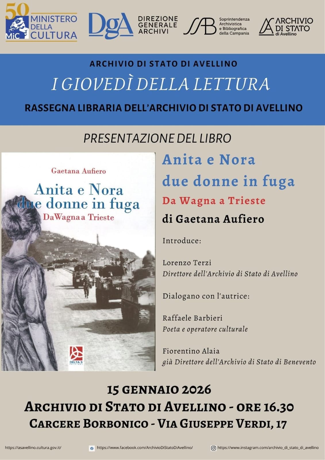 Giovedì 15 gennaio prossimo, alle ore 16:30, si terrà un nuovo appuntamento della rassegna libraria dell’Archivio di Stato di Avellino “I giovedì della lettura”.